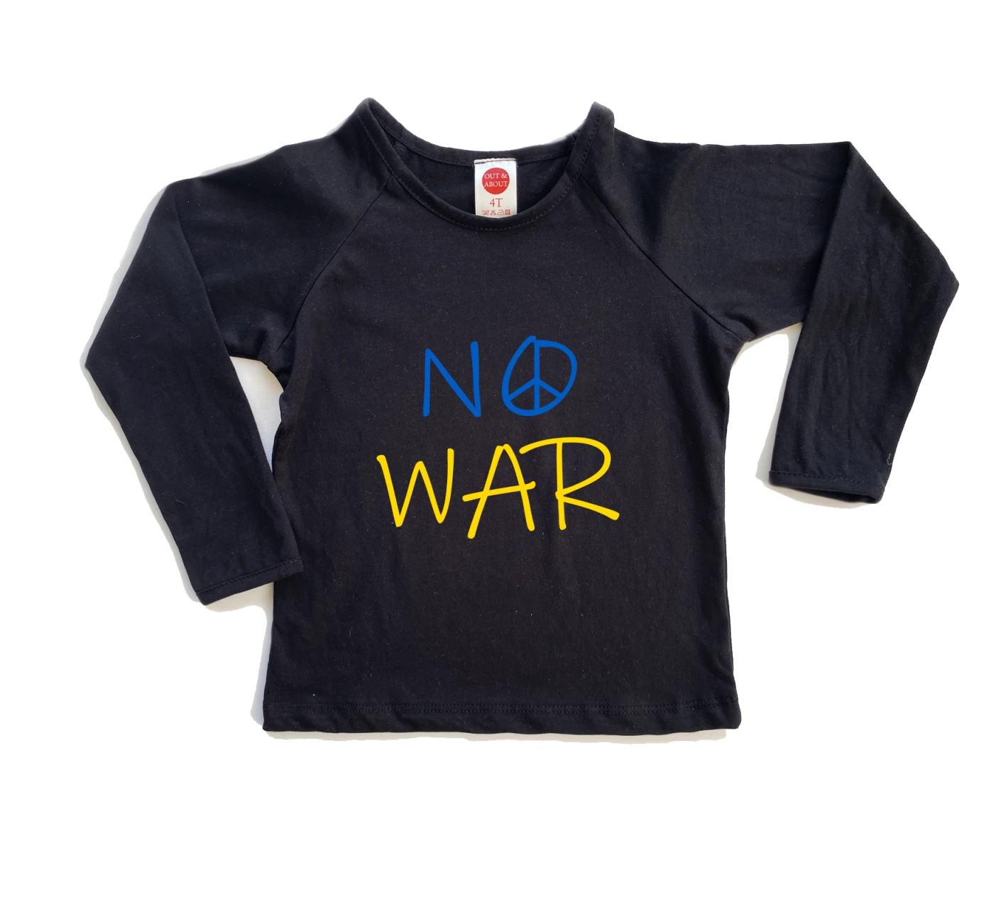 חולצת ילדים 100% כותנה, מיוצר ונתפר בישראל. גזרת רגלן למראה משודרג תמיכה בשלום לאוקראיינה no war