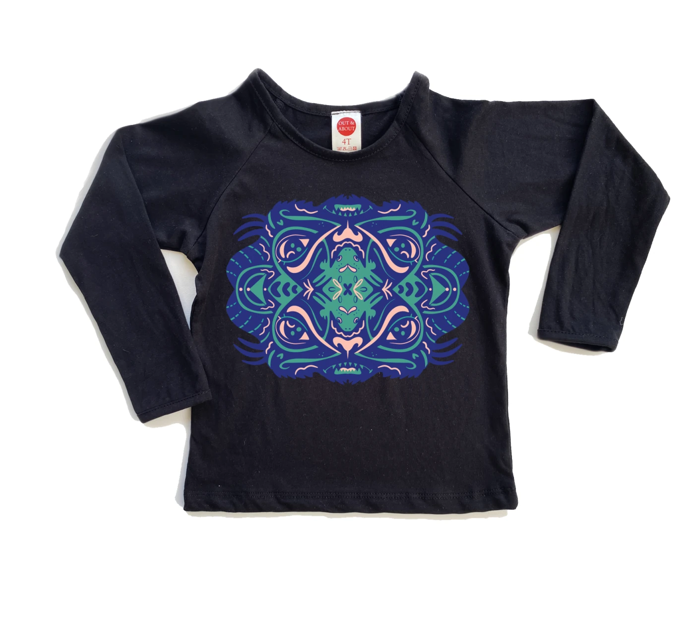 חולצת ילדים 100% כותנה, מיוצר ונתפר בישראל. גזרת רגלן למראה משודרג הדפס של סטודיו וקטו: ,תמנון בסגנון טרייבל אבסטרקטי צבעוני