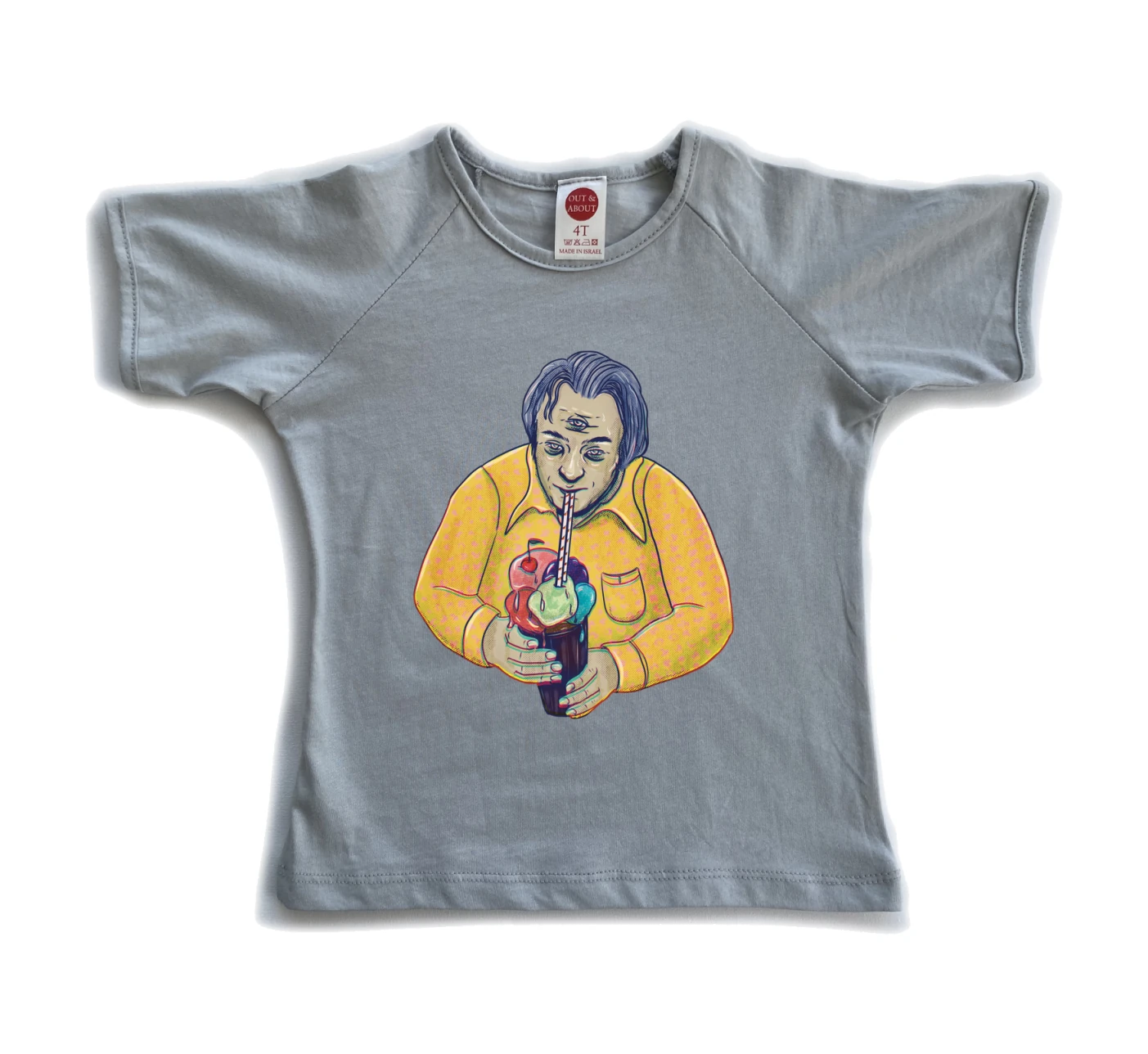 חולצת ילדים 100% כותנה, מיוצר ונתפר בישראל. גזרת רגלן למראה משודרג הדפס של סטודיו וקטו: ארנב עם ראש פתוח