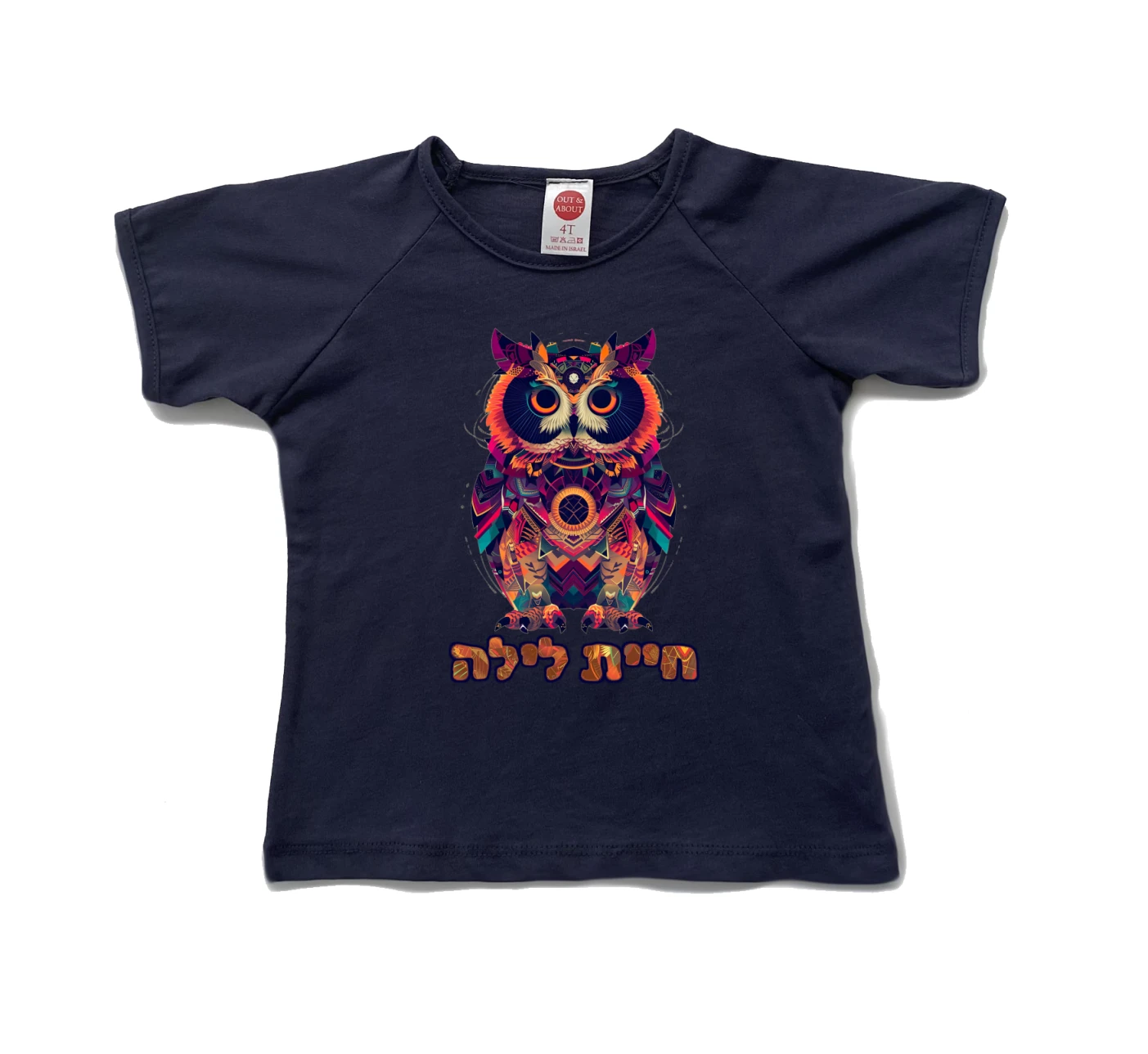 חולצת ילדים 100% כותנה, מיוצר ונתפר בישראל. גזרת רגלן למראה משודרג owl be back