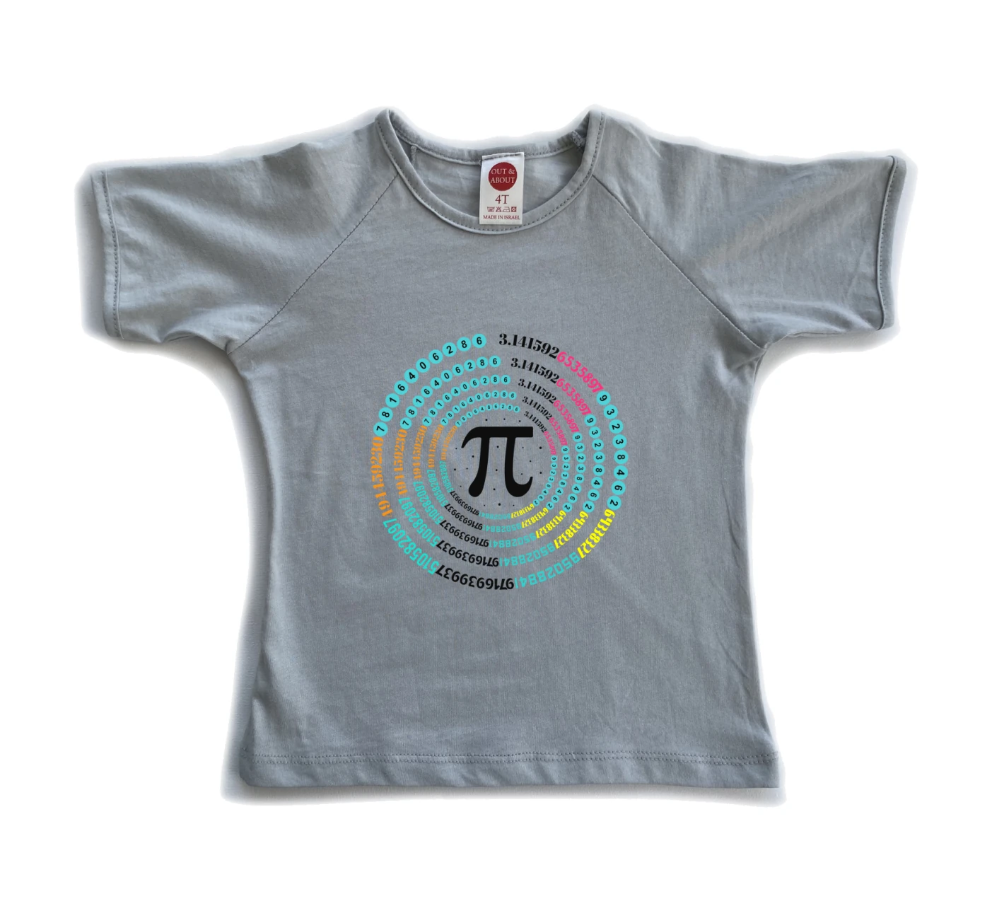 חולצת ילדים 100% כותנה, מיוצר ונתפר בישראל. גזרת רגלן למראה משודרג סמל פאי עם מעגל מספרים