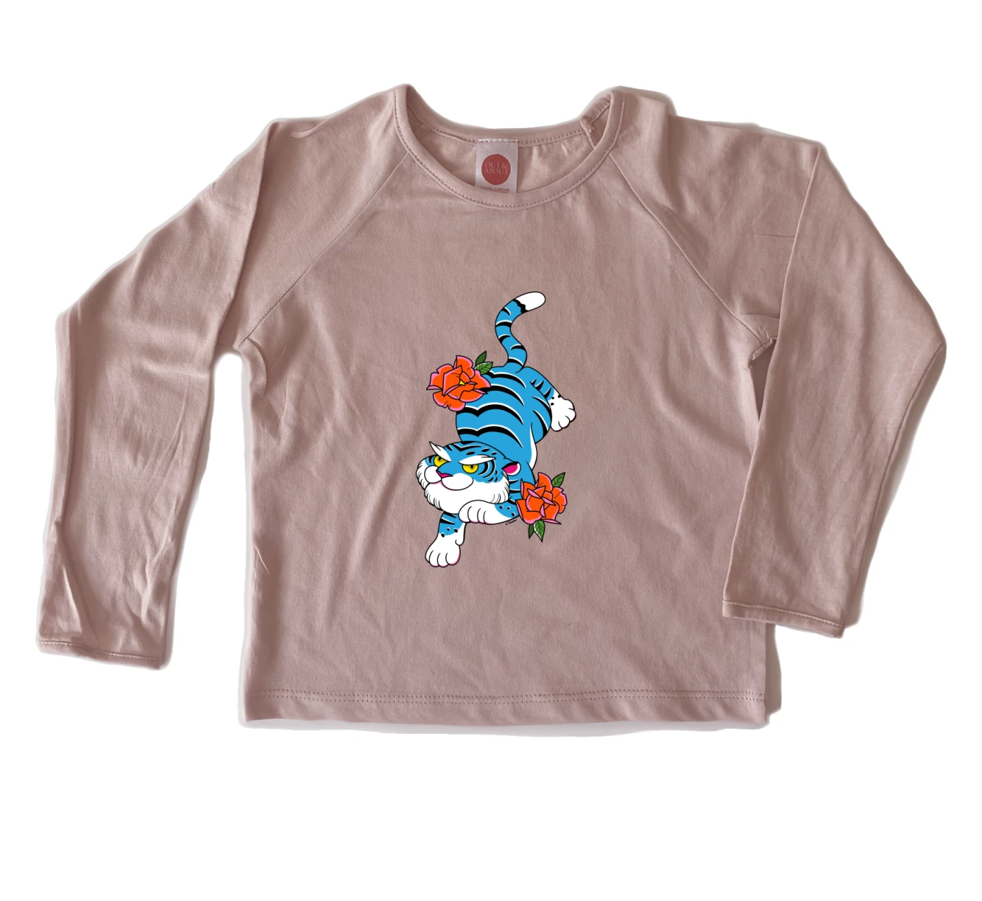 חולצת ילדים 100% כותנה, מיוצר ונתפר בישראל. גזרת רגלן למראה משודרג טיגריס עם מסכה :איורי נמרים של עדי קטנה טאטו