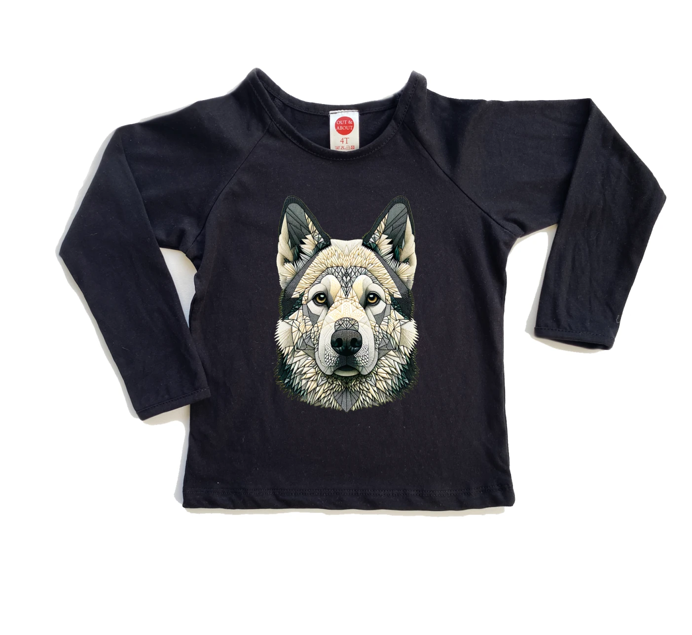 חולצת ילדים 100% כותנה, מיוצר ונתפר בישראל. גזרת רגלן למראה משודרג כלב גאומטרי