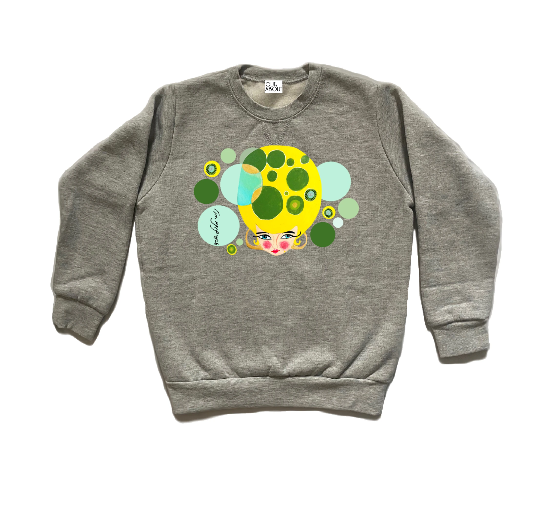 סווטשירט פוטר חורפי מחמם איור אישה צבעונית על רקע בועות של נומי אוהד מלול