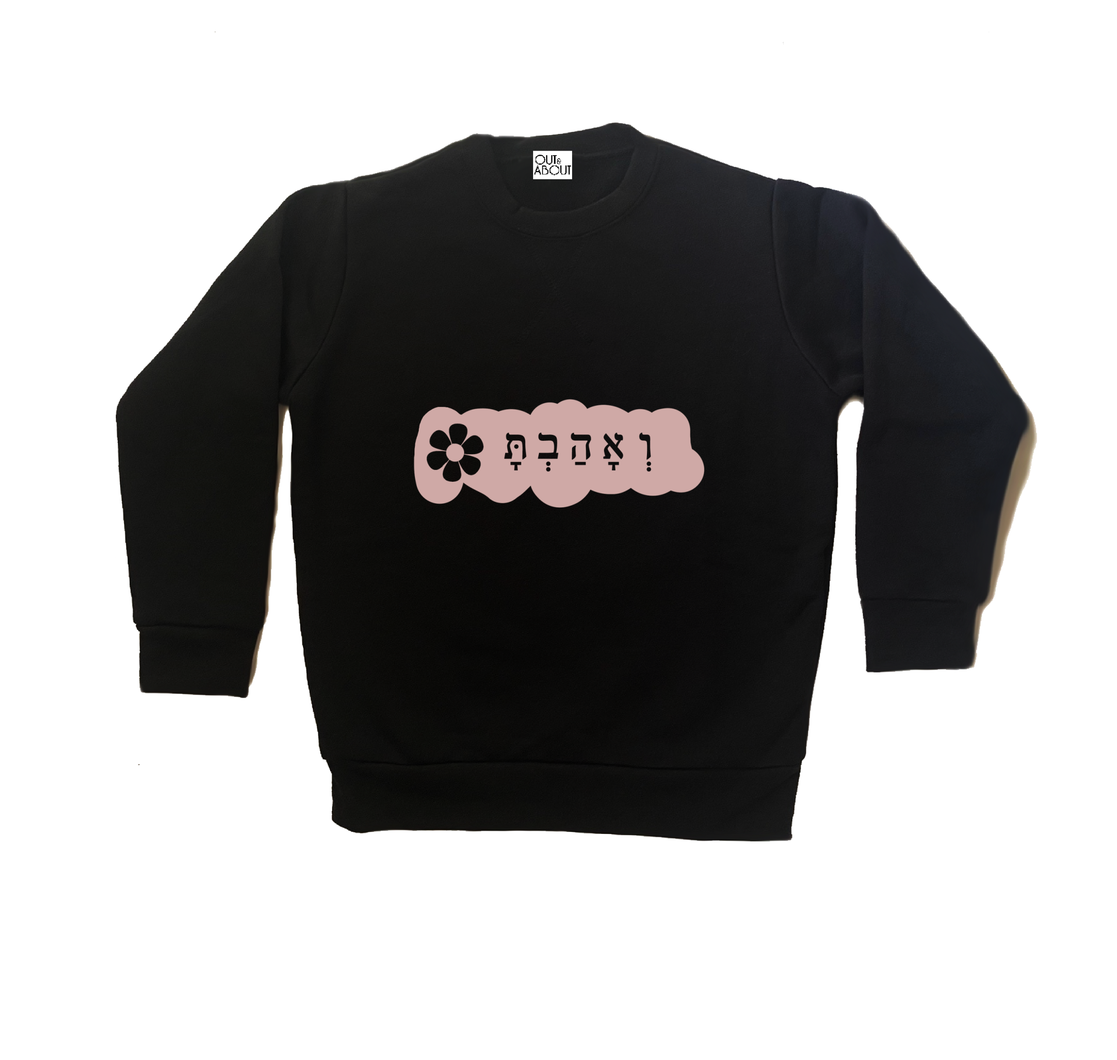 סווטשירט פוטר חורפי מחמם ציטוט משיר ישראלי ברישיון תמלוגים של אקום: טקסט פוליטי/ נושאי המגבעת, אשורי רותי, אלברט תמיר, כהן אלון, פישוף אוהד, הורוביץ אדם, ואוריין רם