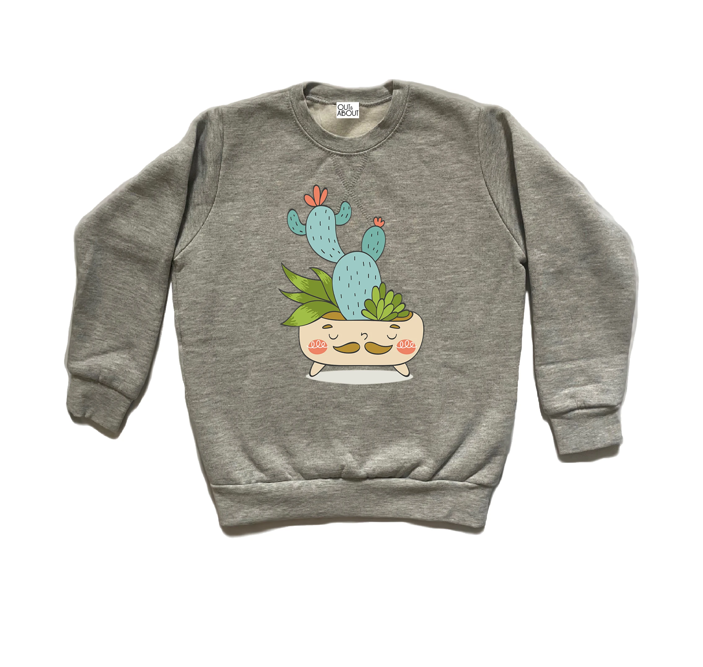 סווטשירט פוטר חורפי מחמם עציץ וורוד עם קקטוס