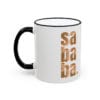 ספל עם הדפס של סבבה באותיות לועזיות עם רקע של אננס .