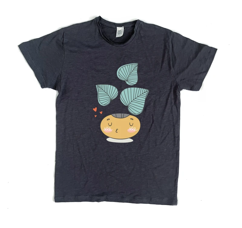 אדנית עם קקטוסים וסוקולנטים חולצת פרמיום בהרכב בד של כותנה וויסקוזה בלנד טבעי ונעים עם קצוות פרומים וגזרה משוחררת.