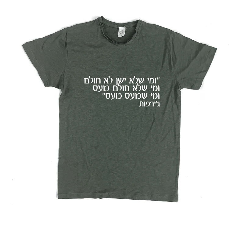 גלריית אקום- בכל הזמנה נעביר תמלוגים לאומנים: ציטוט מתוך השיר : יצחק קלפטר, אם אתה בסביבה חולצת פרמיום בהרכב בד של כותנה וויסקוזה בלנד טבעי ונעים עם קצוות פרומים וגזרה משוחררת.
