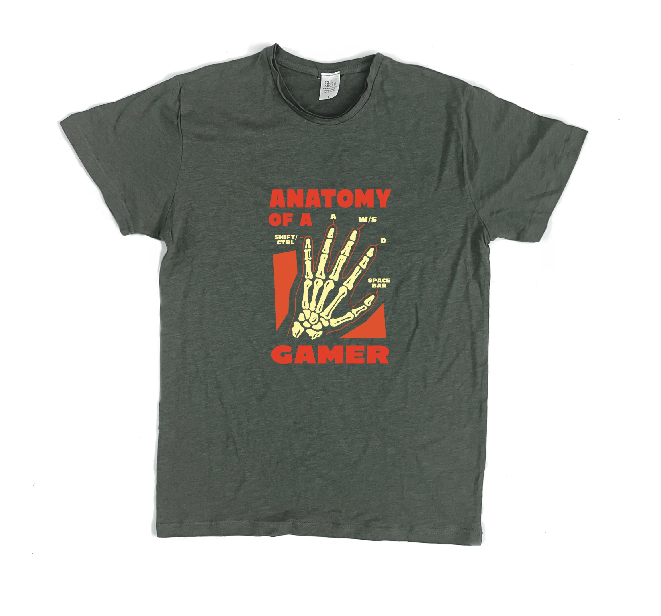 אנטומיה של גיימר – צילום רנטגן של היד חולצת פרמיום בהרכב בד של כותנה וויסקוזה בלנד טבעי ונעים עם קצוות פרומים וגזרה משוחררת.