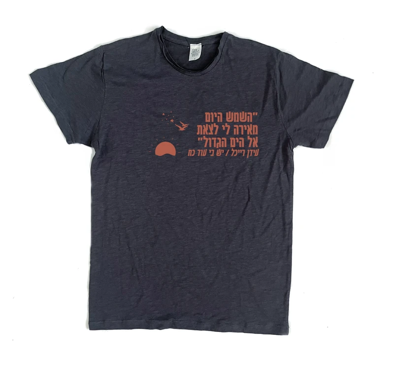 ציטוט משיר ישראלי ברישיון תמלוגים של אקום: בגלל הרוח לאה שבת ומיכה שטרית חולצת פרמיום בהרכב בד של כותנה וויסקוזה בלנד טבעי ונעים עם קצוות פרומים וגזרה משוחררת.