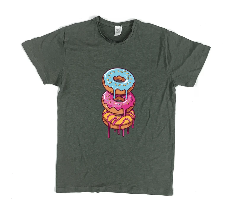 תיאור על ידי בינה מלאכותית: הדפס מיוחד של גולגולת עם מקלון גלידה על רקע לבן. העיצוב מודפס בצבעים בהירים ומצחיקים, מתאים במיוחד לחולצות ולבגדי אופנה אחרים. השילוב בין הגולגולת לגלידה יוצר מראה מגניב וצעיר.