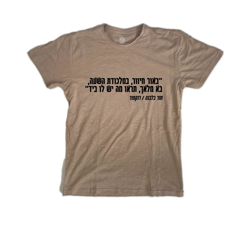 ציטוט משיר ישראלי ברישיון תמלוגים של אקום: יש בי עוד כח עידן רייכל חולצת פרמיום בהרכב בד של כותנה וויסקוזה בלנד טבעי ונעים עם קצוות פרומים וגזרה משוחררת.