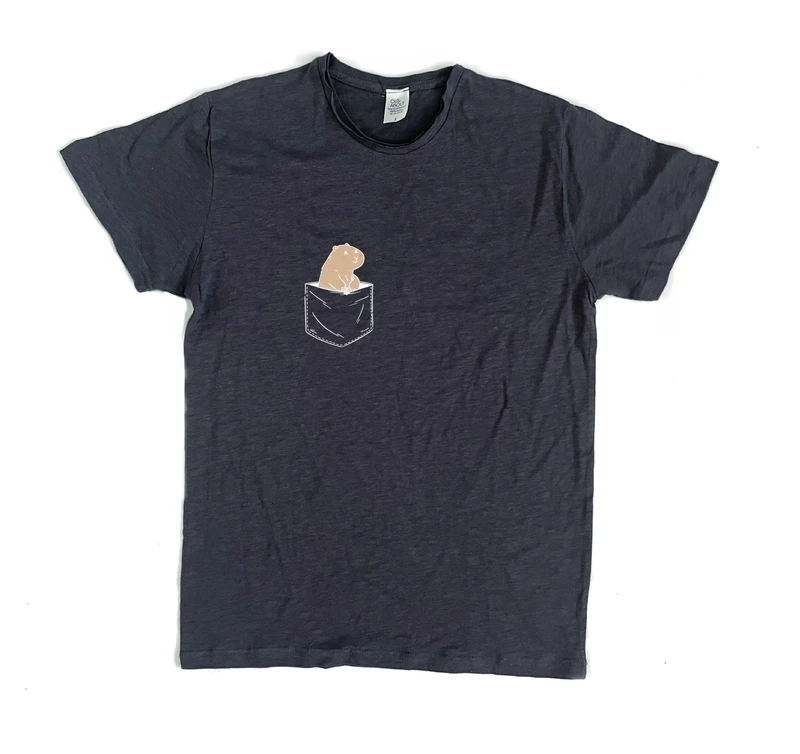 כיס חולצה עם שוקולד למקרה חירום חולצת פרמיום בהרכב בד של כותנה וויסקוזה בלנד טבעי ונעים עם קצוות פרומים וגזרה משוחררת.