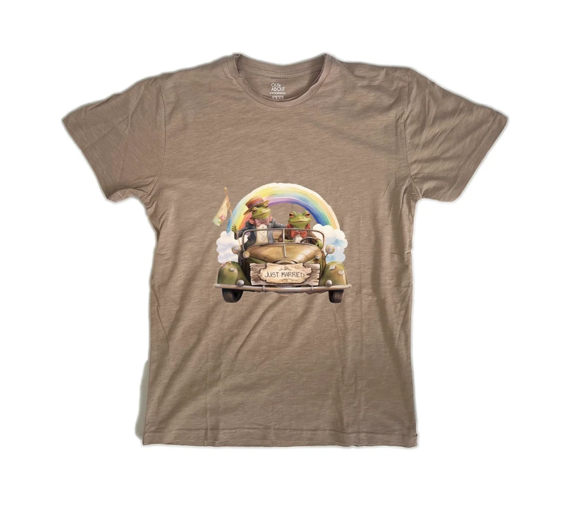 איור של כלה לעתיד היסטרית חולצת פרמיום בהרכב בד של כותנה וויסקוזה בלנד טבעי ונעים עם קצוות פרומים וגזרה משוחררת.