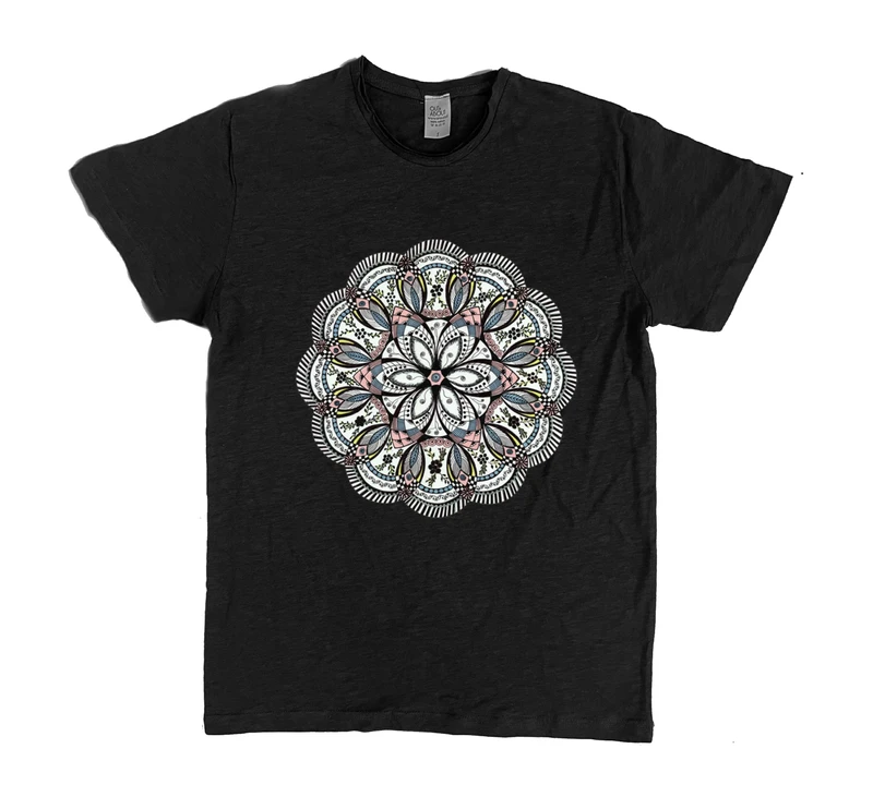 מנדלה בצבעים שחור לבן חולצת פרמיום בהרכב בד של כותנה וויסקוזה בלנד טבעי ונעים עם קצוות פרומים וגזרה משוחררת.