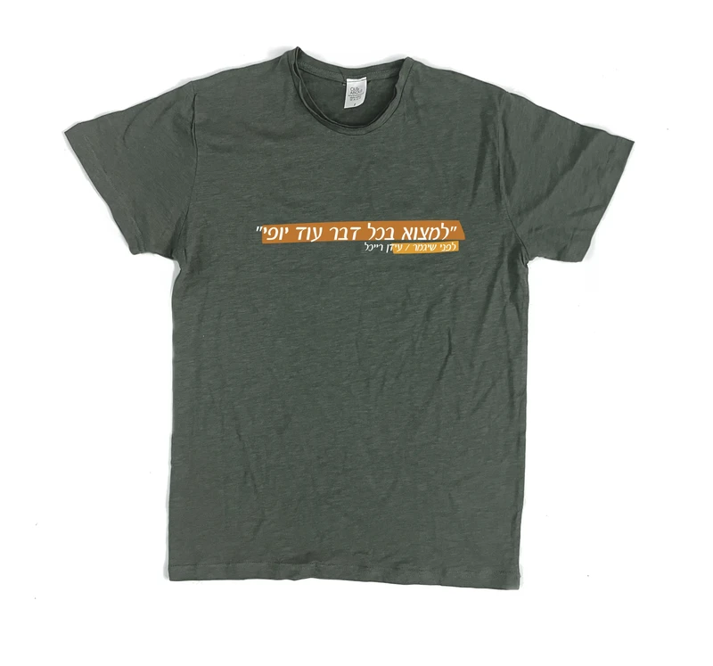 תיאור על ידי בינה מלאכותית: ההדפס 'מילה טובה' מציע ציטוט משיר ישראלי ברישיון תמלוגים של אקום: 'מילה טובה יעקב גלעד יהודית רביץ'. העיצוב כולל את הטקסט המובלט בצבע שחור על רקע לבן. עיצוב פשוט ונקי המתאים להדפסה על בגדים, בעיקר חולצות, ומשדר מסר חיובי ומרגש. מתאים לתומרי יהודיים.