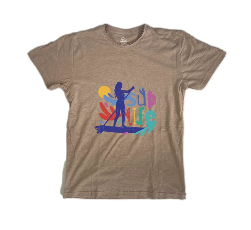 סילואט של גולשת סקי עם כיתוב הומוריסטי "Ski You Later", על רקע פסים צבעוניים בגווני חום, כתום ותכלת. עיצוב רטרו שובב חולצת פרמיום בהרכב בד של כותנה וויסקוזה בלנד טבעי ונעים עם קצוות פרומים וגזרה משוחררת.
