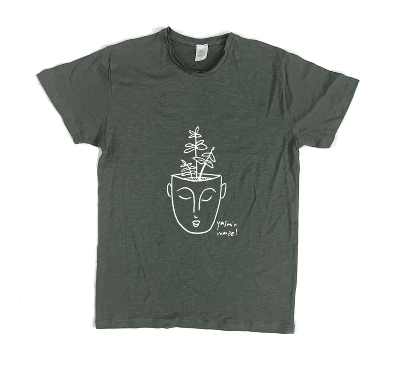 הדפס של המאיירת יסמין מזל : עציצים גדולים חולצת פרמיום בהרכב בד של כותנה וויסקוזה בלנד טבעי ונעים עם קצוות פרומים וגזרה משוחררת.
