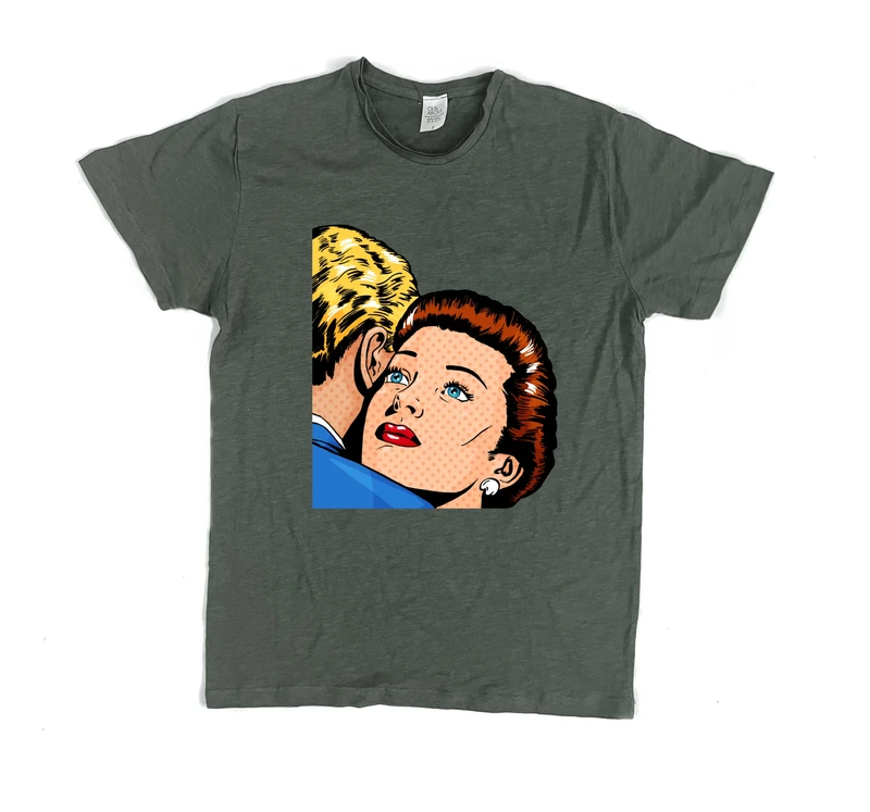 ציור בסגנון פופ ארט / קומיקס של אלית אבני שרון: אישה עם ביקיני ארה"ב חולצת פרמיום בהרכב בד של כותנה וויסקוזה בלנד טבעי ונעים עם קצוות פרומים וגזרה משוחררת.