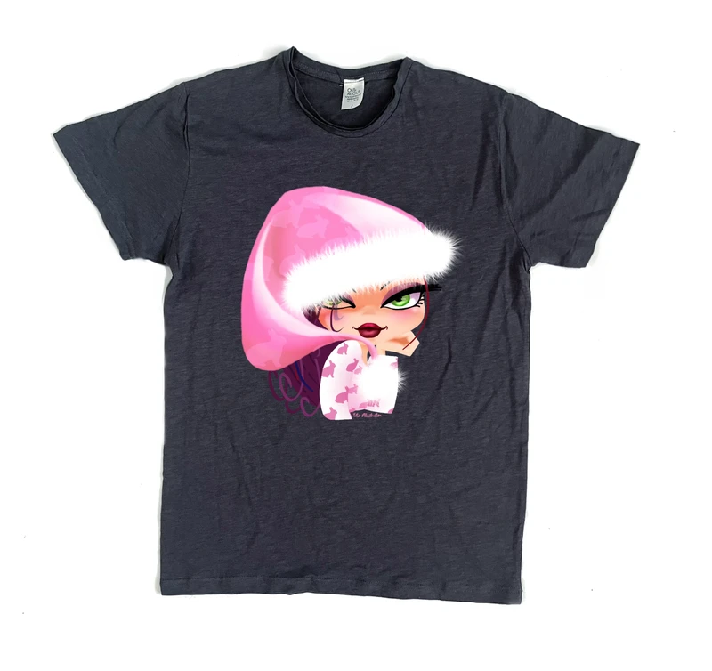 דמות חמודה של פיה עם אפקט תמונה של פרחים של אלית אבני שרון חולצת פרמיום בהרכב בד של כותנה וויסקוזה בלנד טבעי ונעים עם קצוות פרומים וגזרה משוחררת.