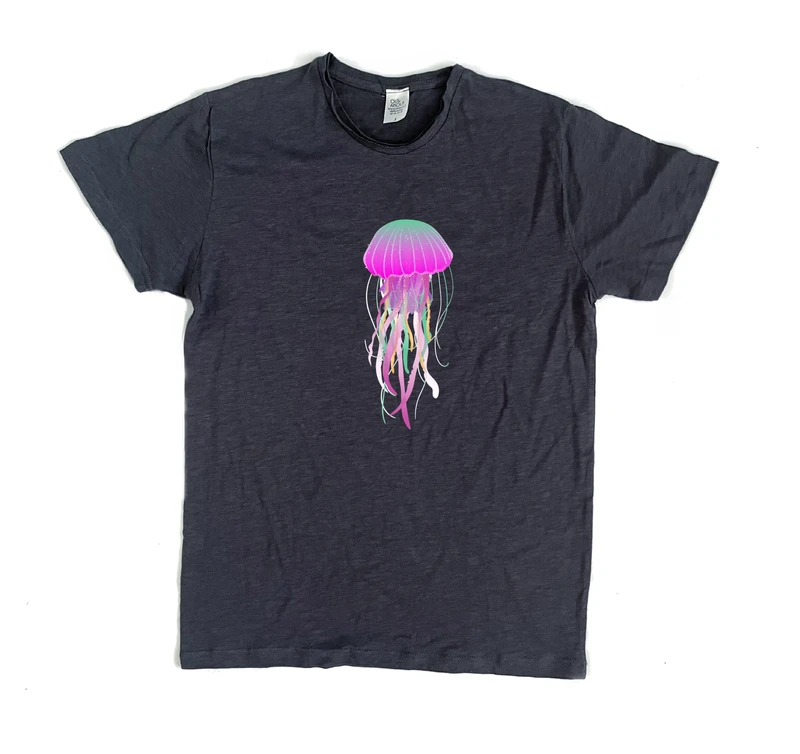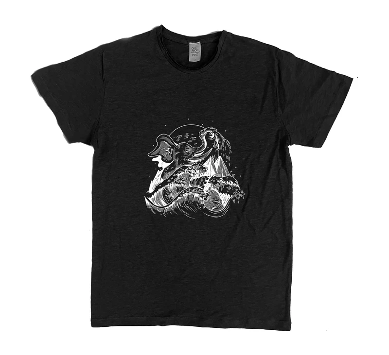 תיאור על ידי בינה מלאכותית: ההדפס 'פילים ביער' מציג שתי פילים בגרסה איורית צבעונית, מוקפים בעלים ירוקים ואטמוספירה טבעית. עיצוב מופשט ומרשים המתאים במיוחד להדפסה על בגדים, ובפרט חולצות. השילוב בין הפילים המרשימים לסביבתם הירוקה יוצר תחושה של נופש ושקט, מושלמת לאוהבי טבע וסטייל קייצי.
