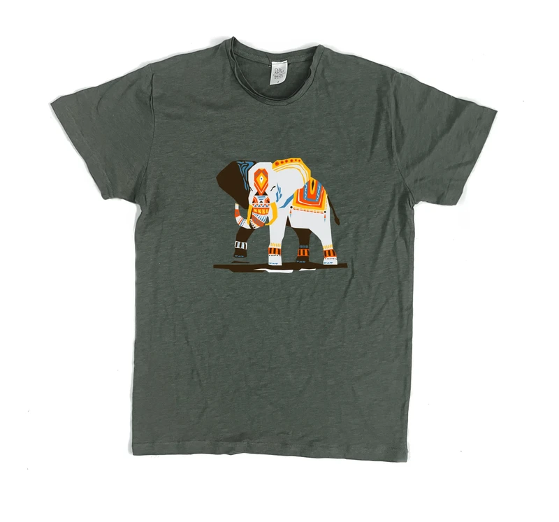 תיאור על ידי בינה מלאכותית: ההדפס 'פיל אוריאנטאלי' מציג פיל אפריקאי בעיצוב מודרני וצבעוני. הפיל מוצג בסגנון אומנותי אבסטרקטי, המשלב קווים מנופחים וגיאומטריים. עיצוב זה מתאים במיוחד להדפסה על בגדים, ויוביל להוספת ניחוח אומנותי וצבעוני לכל חליפה.