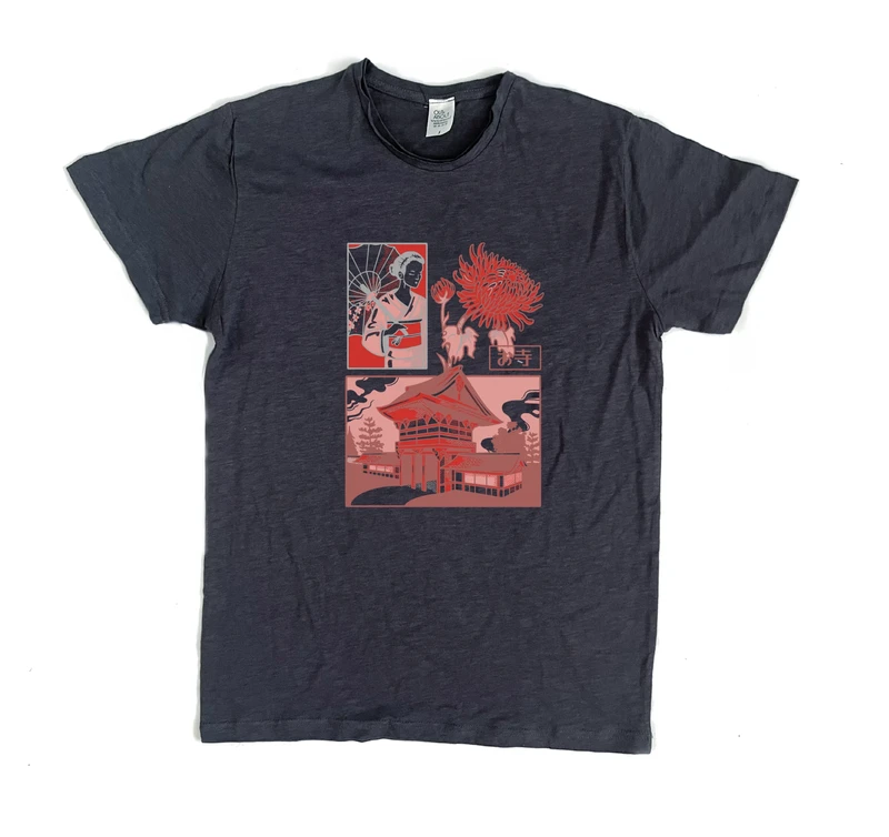 קיפול נייר יפני של ציפור חולצת פרמיום בהרכב בד של כותנה וויסקוזה בלנד טבעי ונעים עם קצוות פרומים וגזרה משוחררת.