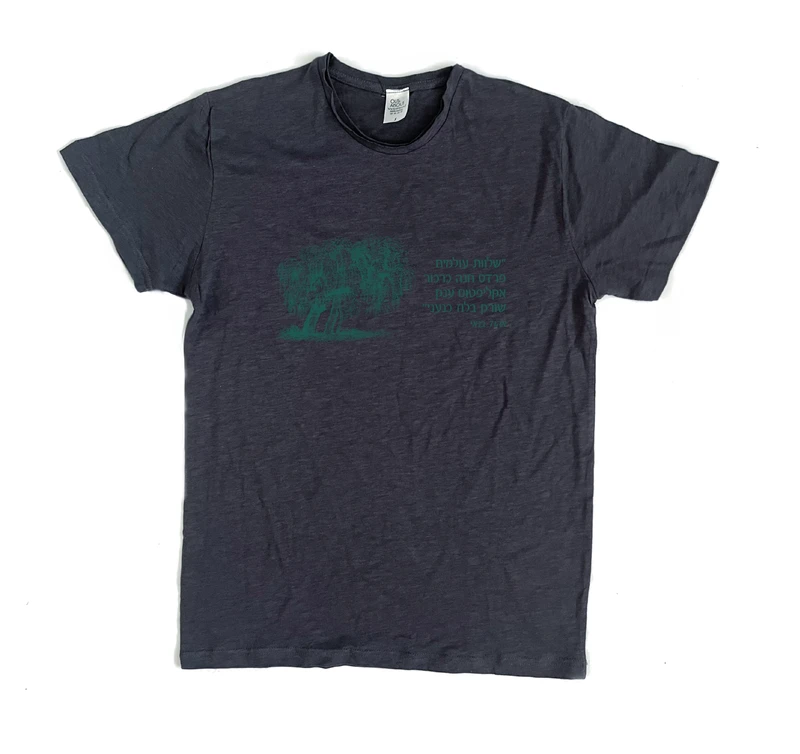 תיאור על ידי בינה מלאכותית: ההדפס 'שאריות של החיים' מציג ציטוט משיר ישראלי ברישיון תמלוגים של אקום: שאריות של החיים, עידן רייכל. ההדפס מאפיין בסגנון מינימליסטי ועדין, בשילוב גוונים ניטרליים. המסר העמוק והמעורר למחשבה מתאים בצורה מושלמת לבגדי עדכון, בעיקר חולצות, ומעניק מראה עכשווי ואופנתי.