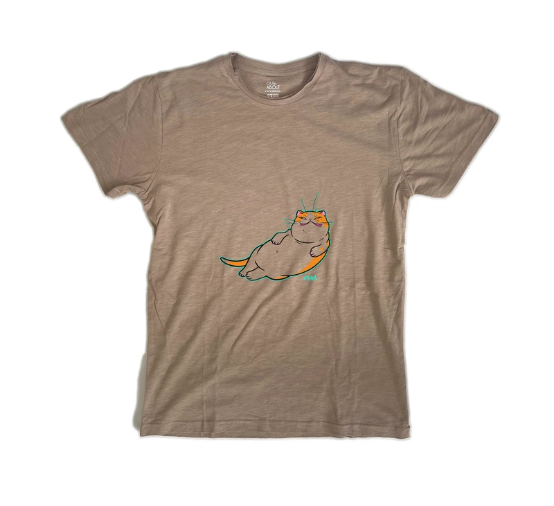 נמר בקו נקי של עדי קטנה טאטו חולצת פרמיום בהרכב בד של כותנה וויסקוזה בלנד טבעי ונעים עם קצוות פרומים וגזרה משוחררת.