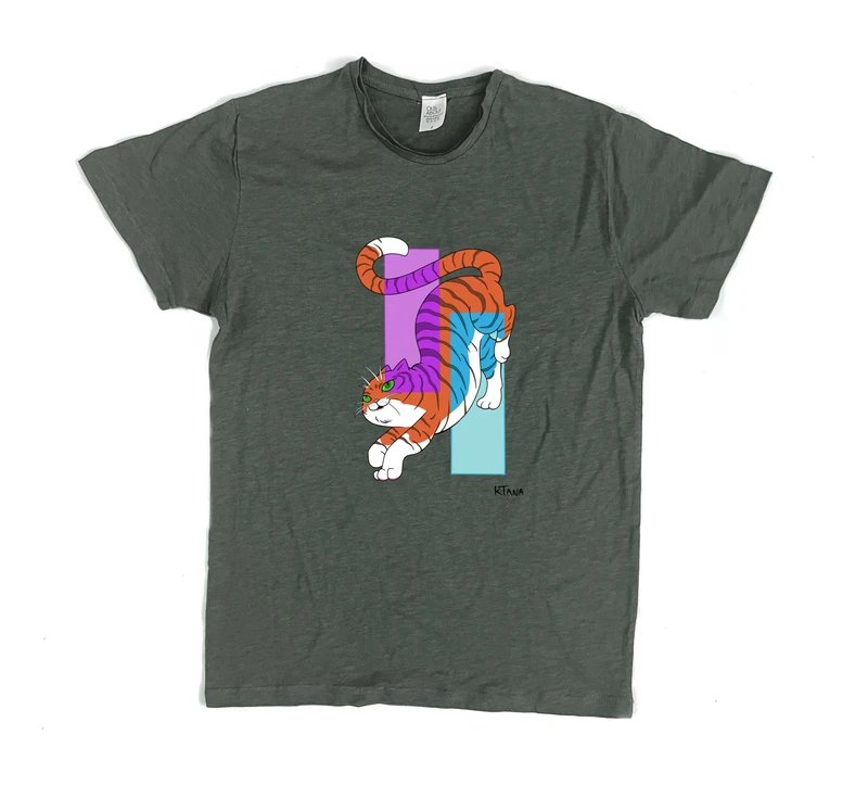 תיאור על ידי בינה מלאכותית: ההדפס 'Tiger koi' (k07) מציג חתול צבעוני בסגנון עדי קטנה טאטו. העיצוב משלב אלמנטים צבעוניים ומורכבים המושכים את העין. ההדפס מתאים במיוחד להדפסה על בגדים, בעיקר חולצות, ויכול לשדר אופי וסטייל מיוחד.