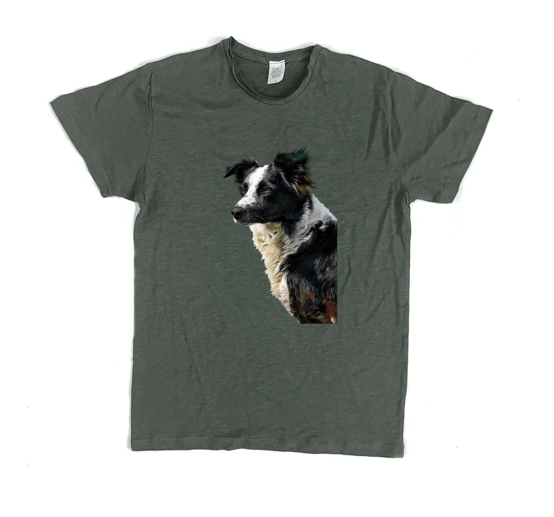 Triangulated dog 12 חולצת פרמיום בהרכב בד של כותנה וויסקוזה בלנד טבעי ונעים עם קצוות פרומים וגזרה משוחררת.