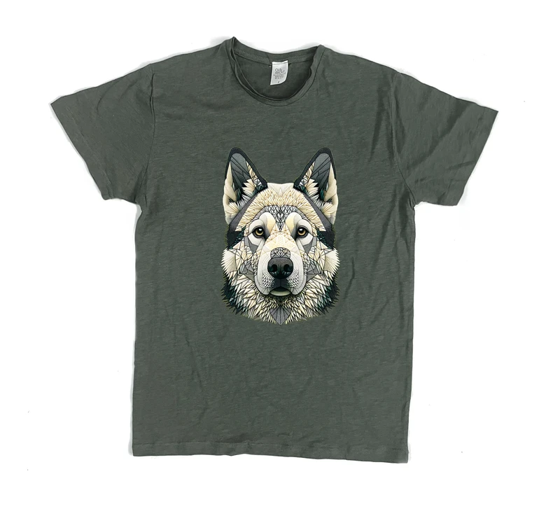 כלב גאומטרי חולצת פרמיום בהרכב בד של כותנה וויסקוזה בלנד טבעי ונעים עם קצוות פרומים וגזרה משוחררת.