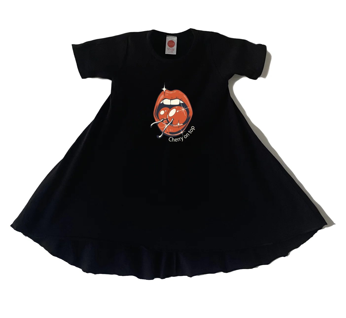 איור צבעוני ועשיר של בובות מטריושקה מסורתיות במבנה קבוצתי שמלה לילדה 100% כותנה מיוצר ונתפר בישראל