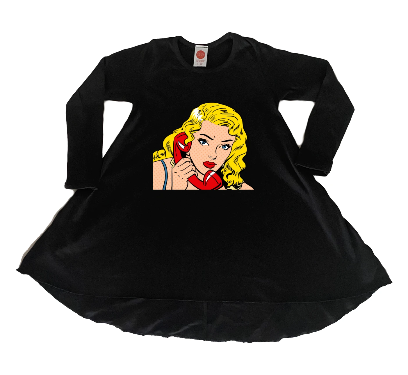 לבחירה בין 4 צבעים ו – 3 אורכי שרוול ציור בסגנון פופ ארט / קומיקס של אלית אבני שרון: אישה סופר על