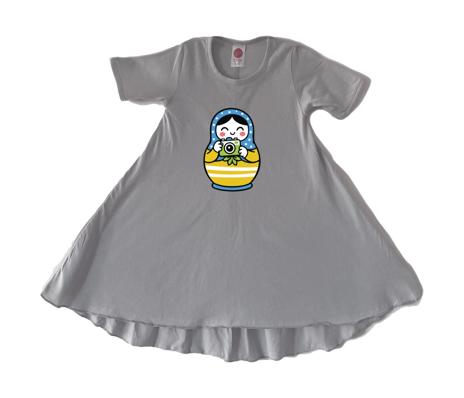 משחק מחשב עם כיתוב לא ישן קלאסי בסגנון רטרו שמלה לילדה 100% כותנה מיוצר ונתפר בישראל