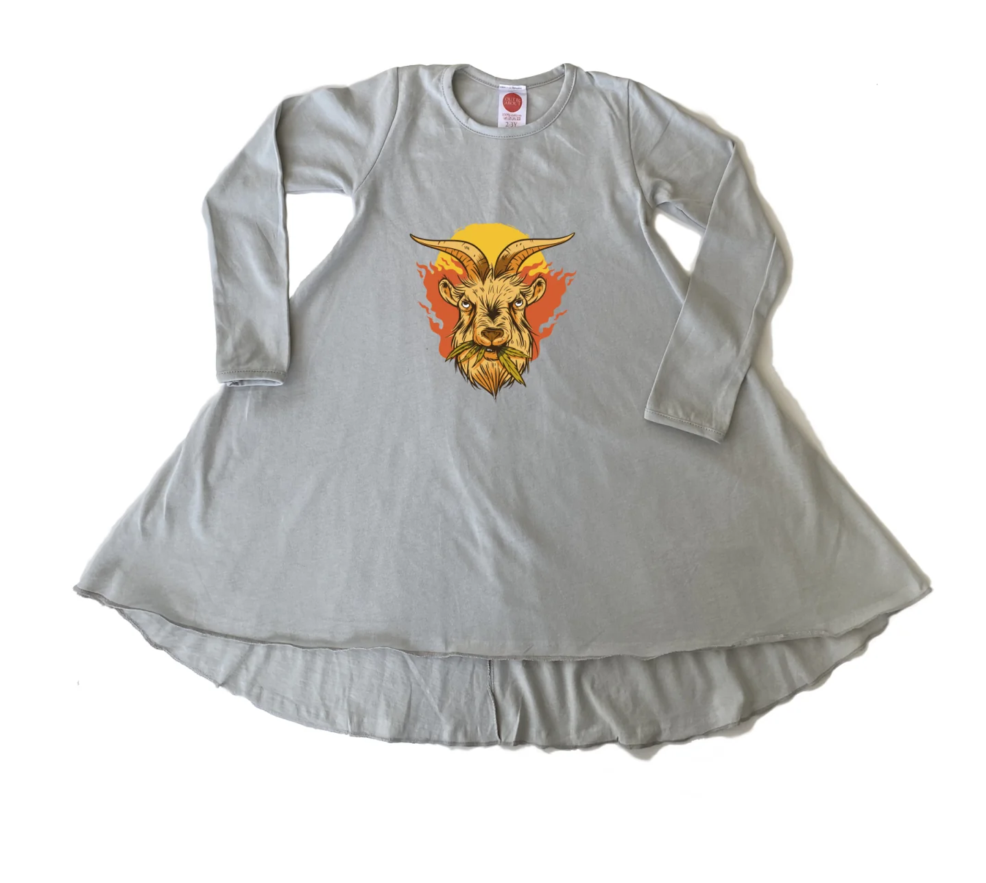 דמות של עז תיש עם הכיתוב you goat me crazy שמלה לילדה 100% כותנה מיוצר ונתפר בישראל