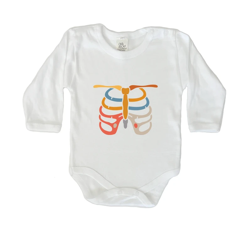 תיאור על ידי בינה מלאכותית: ההדפס 'צלעות בית החזה' מציג אנטומיה פנימית של בית החזה. העיצוב משלב ציור מדויק של הצלעות עם צבעים ניטרליים. עיצוב זה מתאים במיוחד לבגדים, בעיקר חולצות, ומעניק מראה אופנתי ואומנותי.